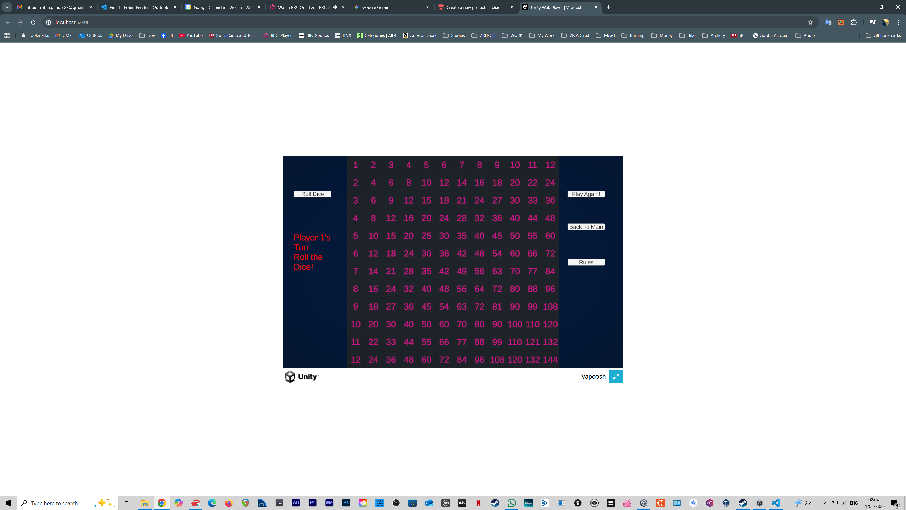 **Vapoosh** is a strategic turn-based board game for 1-4 players. Players roll dice and place counters on a 12×12 grid to form winning patterns. The game combines luck, strategy, and tactical positioning.